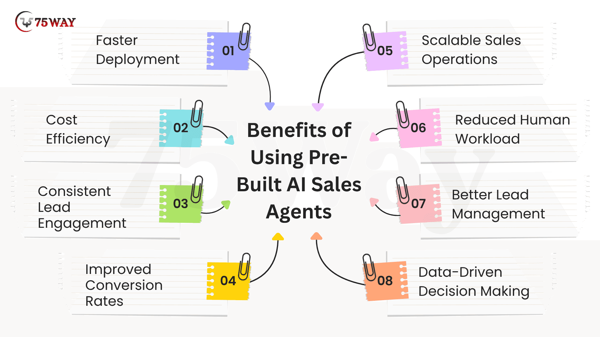 Pre-built AI sales agents provide businesses with a fast and efficient way to automate sales processes without building complex systems from scratch. They come with ready-to-use workflows, conversational intelligence, and integration capabilities that help organizations improve engagement, reduce workload, and scale revenue generation more effectively across multiple channels.