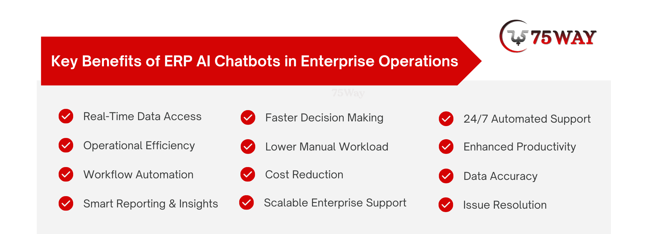 ERP AI chatbots bring tangible advantages that transform enterprise operations from the ground up. By combining real-time data access, workflow automation, and AI-driven insights, these chatbots help teams make faster decisions, reduce errors, and focus on strategic tasks, all while keeping operations smooth, scalable, and cost-efficient.
