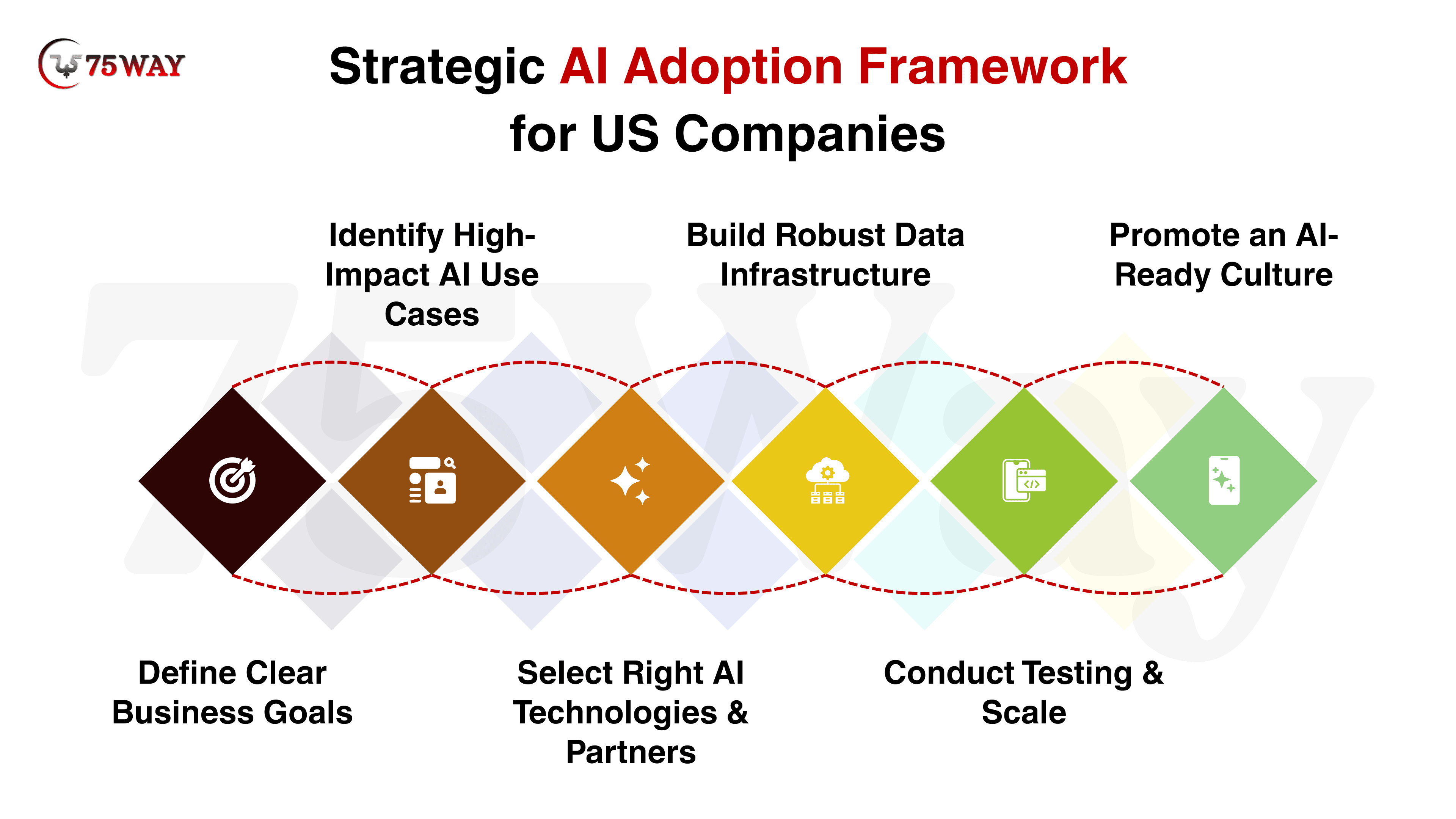 To conclude, AI development now feels less like an experiment and more like a requirement for growth across USA businesses. AI automation reduces costs while maintaining quality. On the other hand, predictive analytics brings clarity where uncertainty once slowed decisions. Personalization builds stronger customer relationships, even at scale. A strategic adoption framework lowers risk and keeps ROI on track. Companies that align AI initiatives with real business goals gain speed, resilience, and a lasting competitive edge in 2026 and beyond. Real growth opportunities already exist for businesses ready to act now. Partner with 75way, your right AI app development company in USA to avail a free strategic session on AI and roadmap.