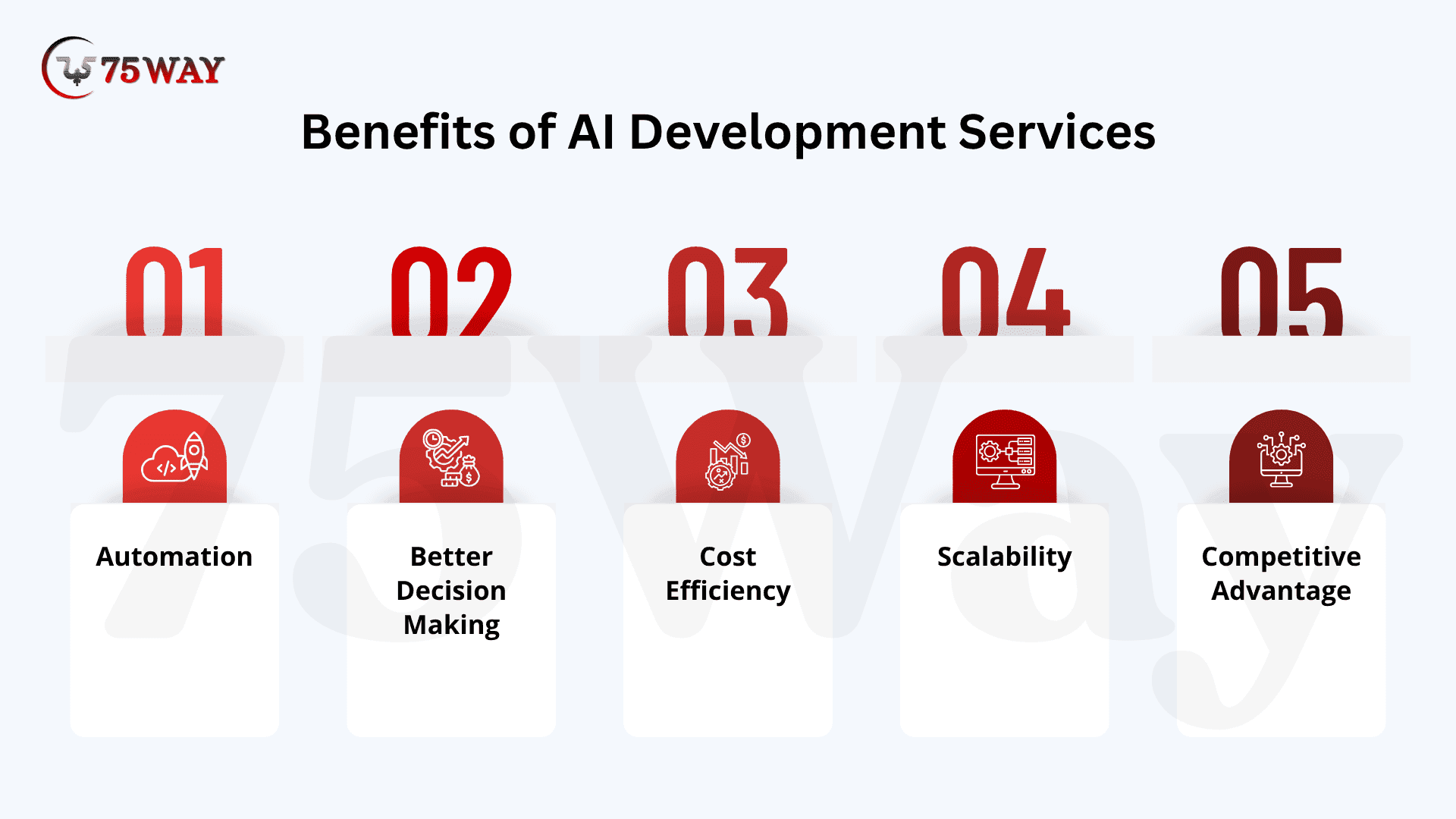 AI development services help businesses automate processes, improve decision-making, enhance customer experiences, increase operational efficiency, enable predictive insights, reduce costs, boost productivity, and foster innovation by leveraging intelligent systems that learn, adapt, and provide actionable, data-driven solutions.