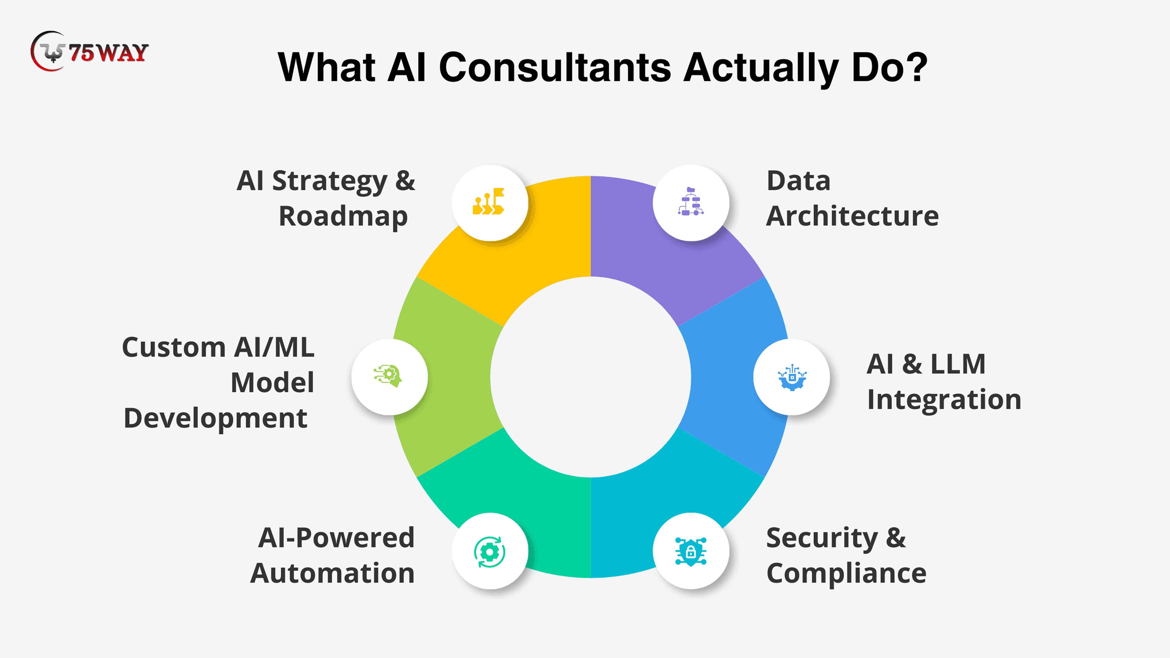 AI consultants are experts who guide businesses from uncertainty to the implementation of AI tools, whether they are Agentic AI solutions or AI-powered mobile apps. Clear strategies, reliable data systems, and scalable AI solutions form the foundation for your business's growth. Every step focuses on reducing risk while increasing measurable impact across operations, products, and customer experiences.