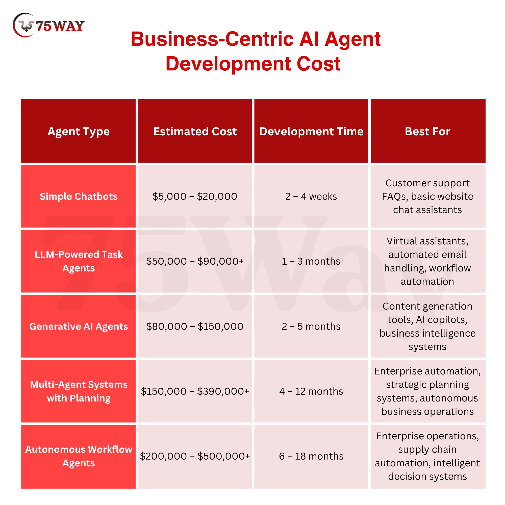 - AI agent costs range widely from $5,000 to $500,000, depending on complexity.