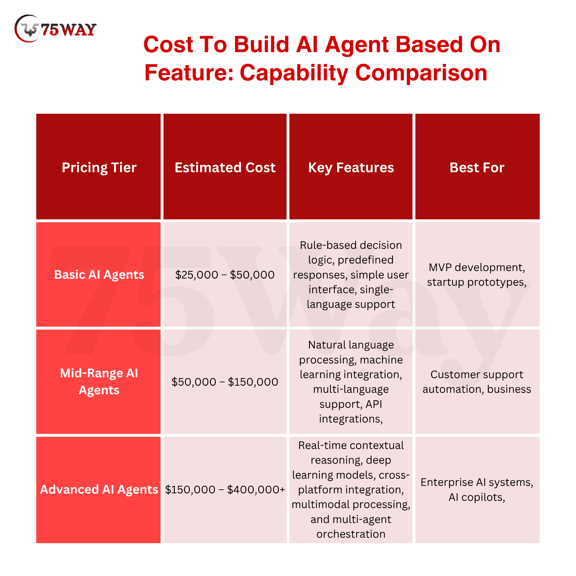 Cost To Build AI Agent Based On Feature: Capability Comparison