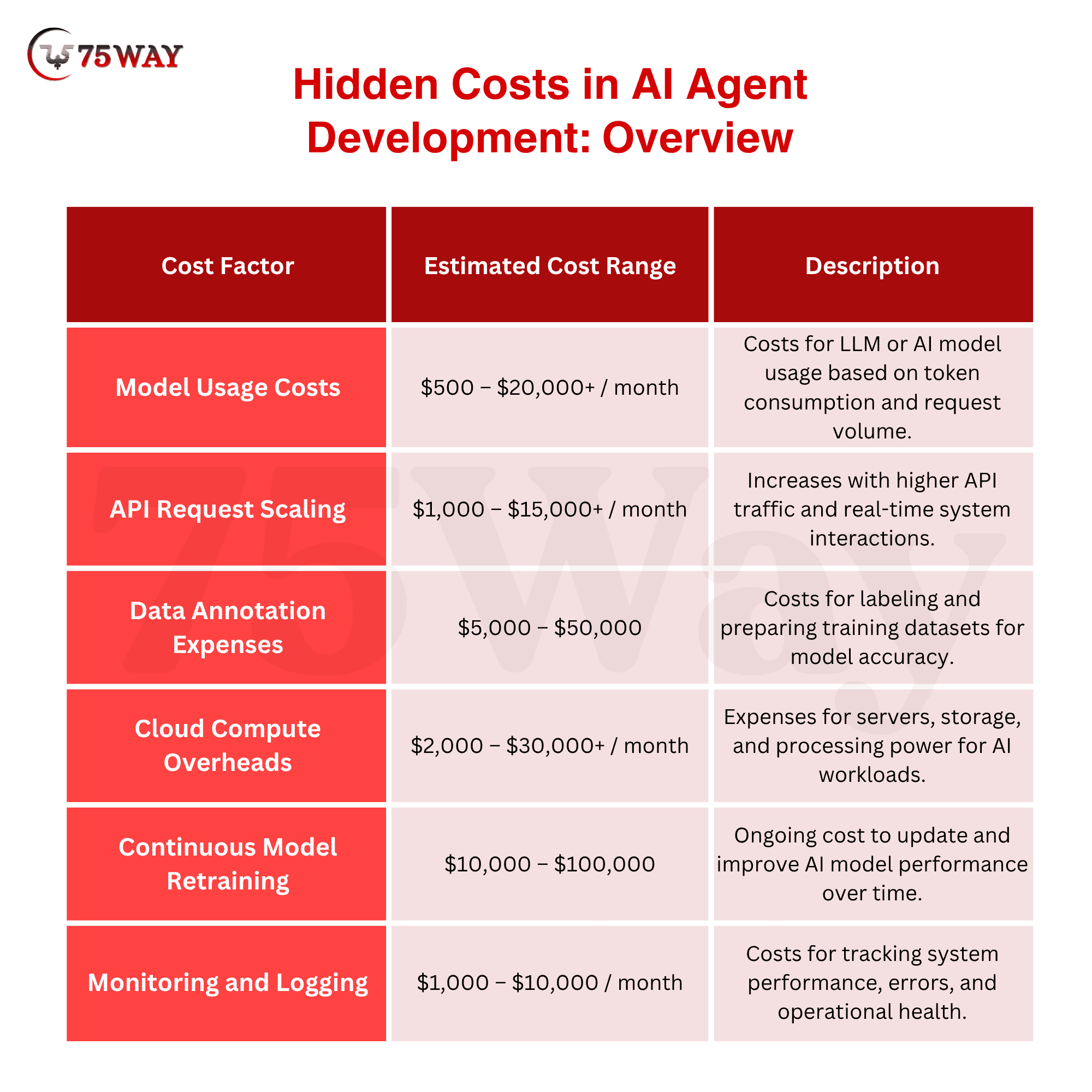 Many AI agent projects appear cost-predictable during planning, but once deployed, additional technical and operational requirements surface. These are not always visible in the initial development phase, yet they become critical as user traffic increases, data volume grows, and the system starts handling real-world workloads.