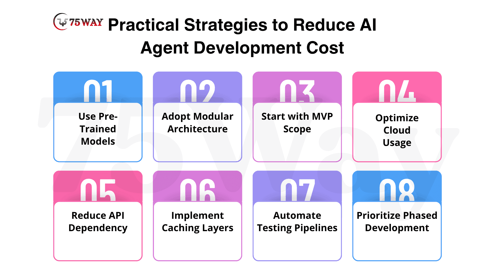 Managing the cost to build an AI agent requires a smarter engineering and planning approach rather than simple budget cuts. The most effective cost savings come from reducing technical complexity early, selecting reusable components, and building systems that scale gradually rather than over-engineering from the start. Businesses that adopt a phased development strategy often achieve better ROI while maintaining performance quality and flexibility. Below are proven strategies that help control AI agent development costs while ensuring long-term stability and scalability.