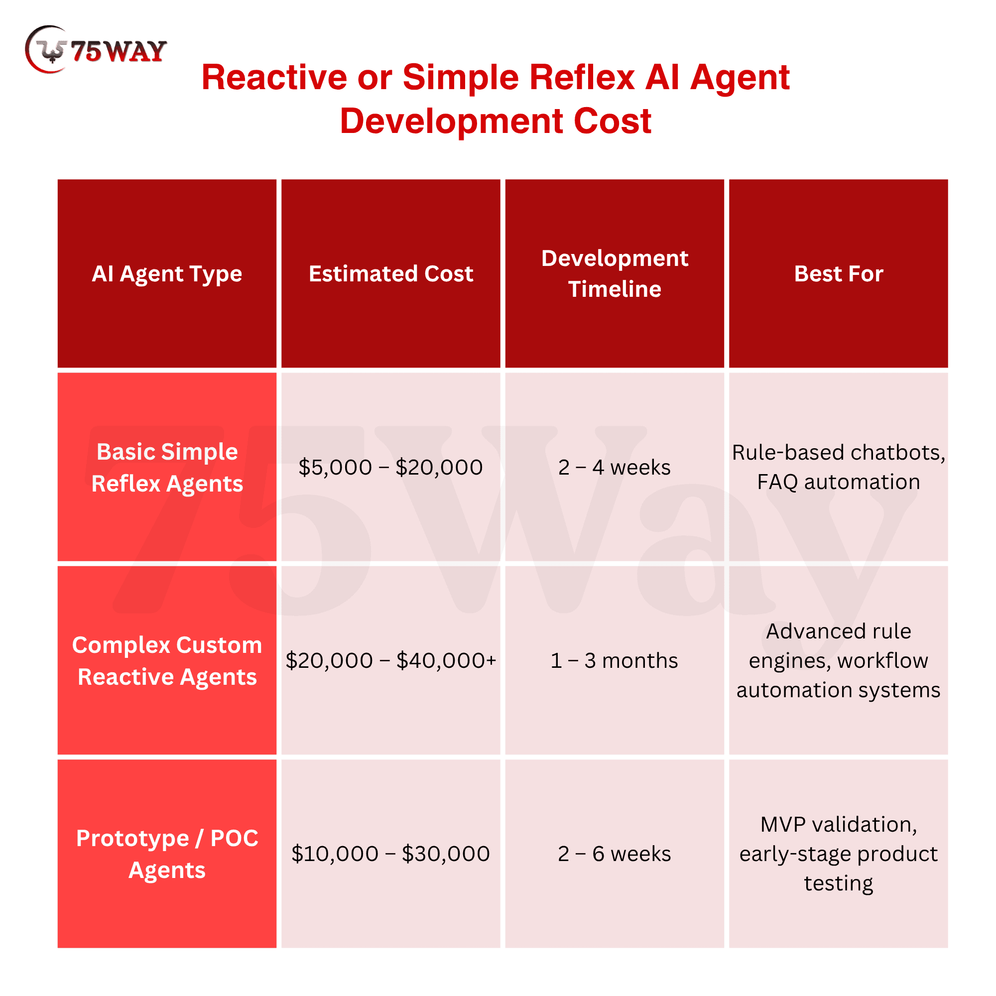 1. Reactive (Simple Reflex) AI Agent Development Costs