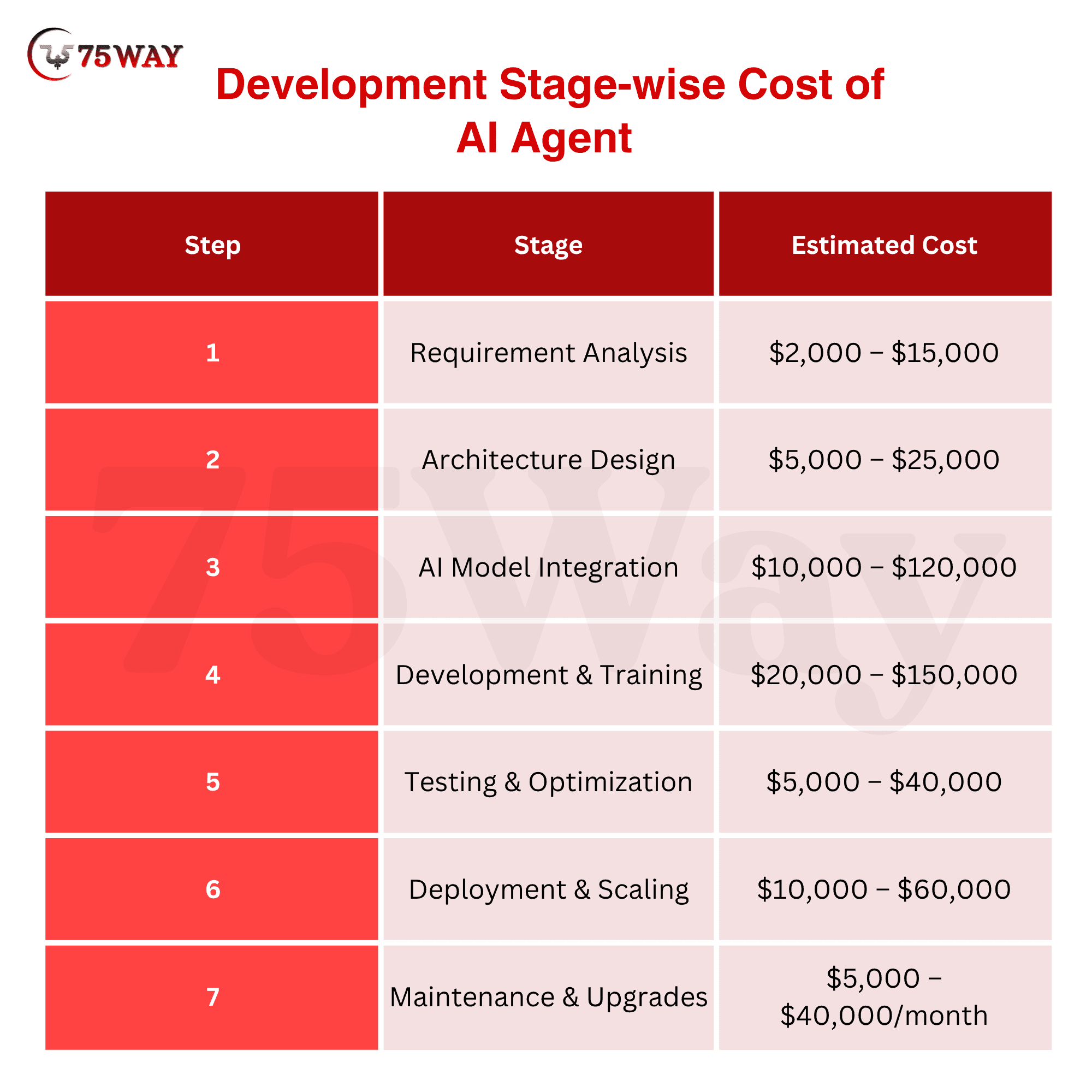 Below is a structured cost breakdown of diverse kinds of AI agents across basic, mid-level, and advanced categories.