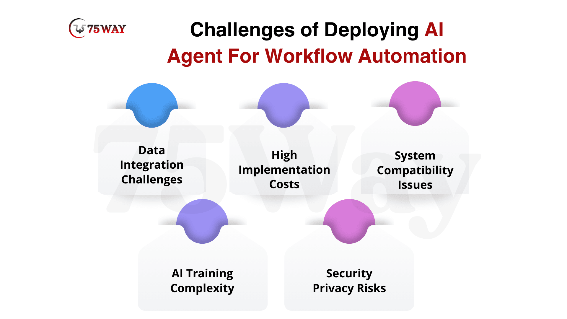 AI workflow automation offers significant benefits, but it also comes with challenges. Businesses often face integration issues with existing systems, data quality limitations, and high initial implementation costs. Managingvirtual AI assistants requires proper training, monitoring, and continuous updates to ensure accuracy. Additionally, coordinating multi-agent systems can be complex, as multiple AI agents must work together seamlessly without conflicts. Security, data privacy, and lack of skilled expertise further add to the challenges, making careful planning and strategy essential for successful automation adoption.