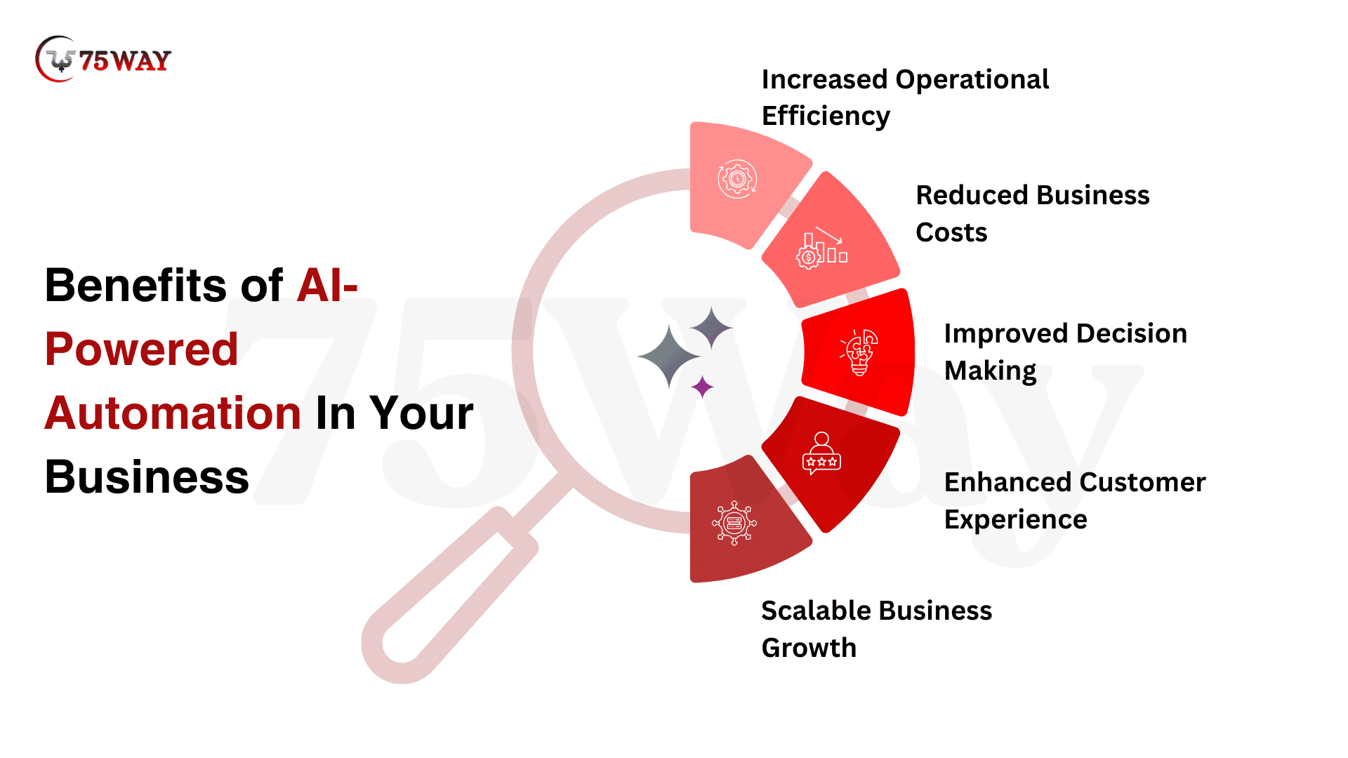 Increased Operational Efficiency: AI-powered automation streamlines repetitive tasks and optimizes workflows, allowing businesses to operate faster and more effectively. It reduces manual effort, eliminates bottlenecks, and ensures consistent performance, enabling teams to focus on strategic activities and improving overall productivity across departments.