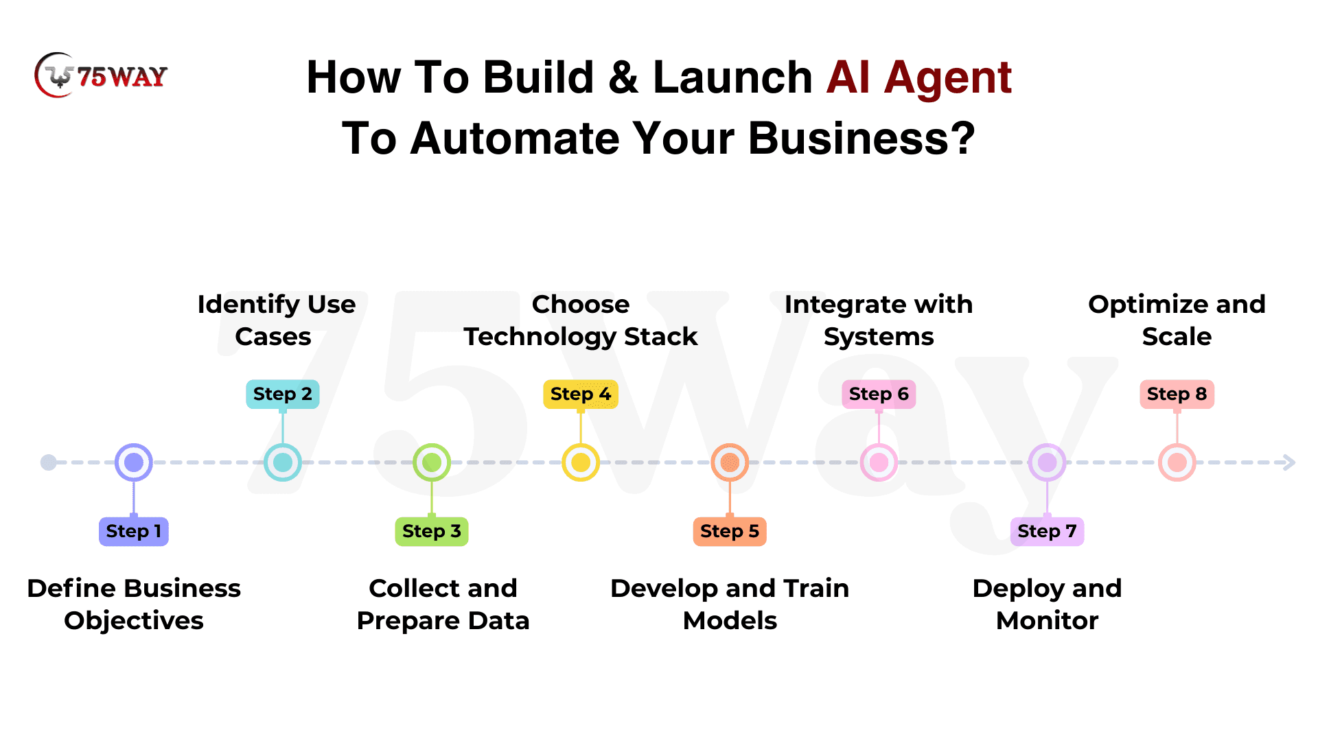 Once the AI agent is ready, it must be integrated with existing business systems like CRM, ERP, or communication platforms. Integration ensures that the AI agent can access data and perform tasks seamlessly.
