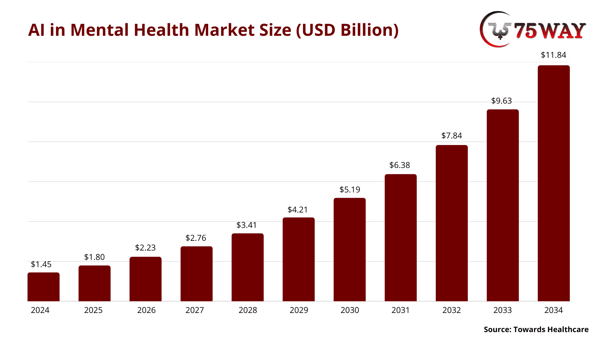 - Global AI mental health market projected to reach $11.84 billion by 2034.