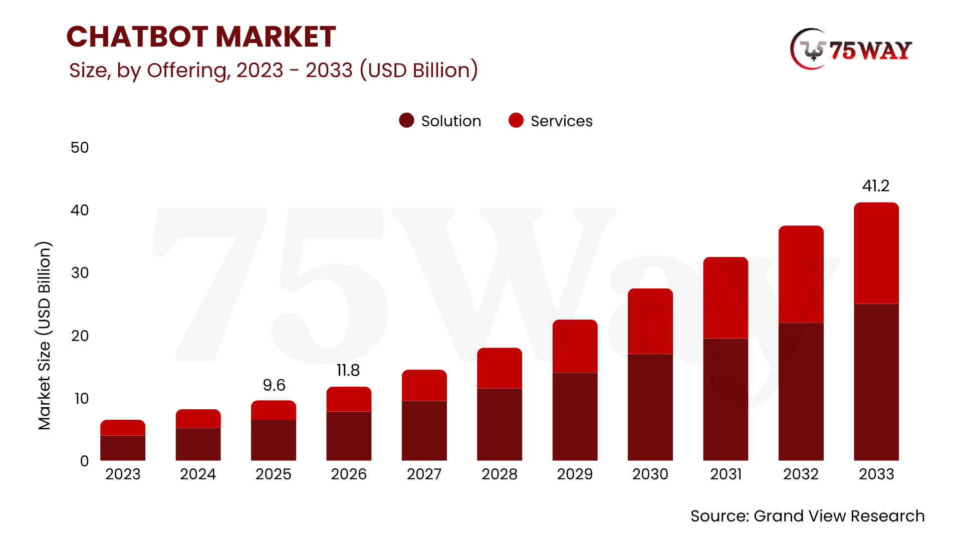There is a moment in every business journey when customer expectations quietly change before leadership fully notices it. Due to the emergence of artificial intelligence solutions, conversations that once waited hours now demand instant responses. And the worst part is? Businesses that fail to respond begin losing customers and revenue. So, how to deal with such a situation? How to provide quick responses 24/7 and retain customers? The answer is AI chatbot development solutions. In fact, the AI chatbot market is expected to reach $1,339 billion by 2030, growing from $214 billion in revenue, according to Forbes.
