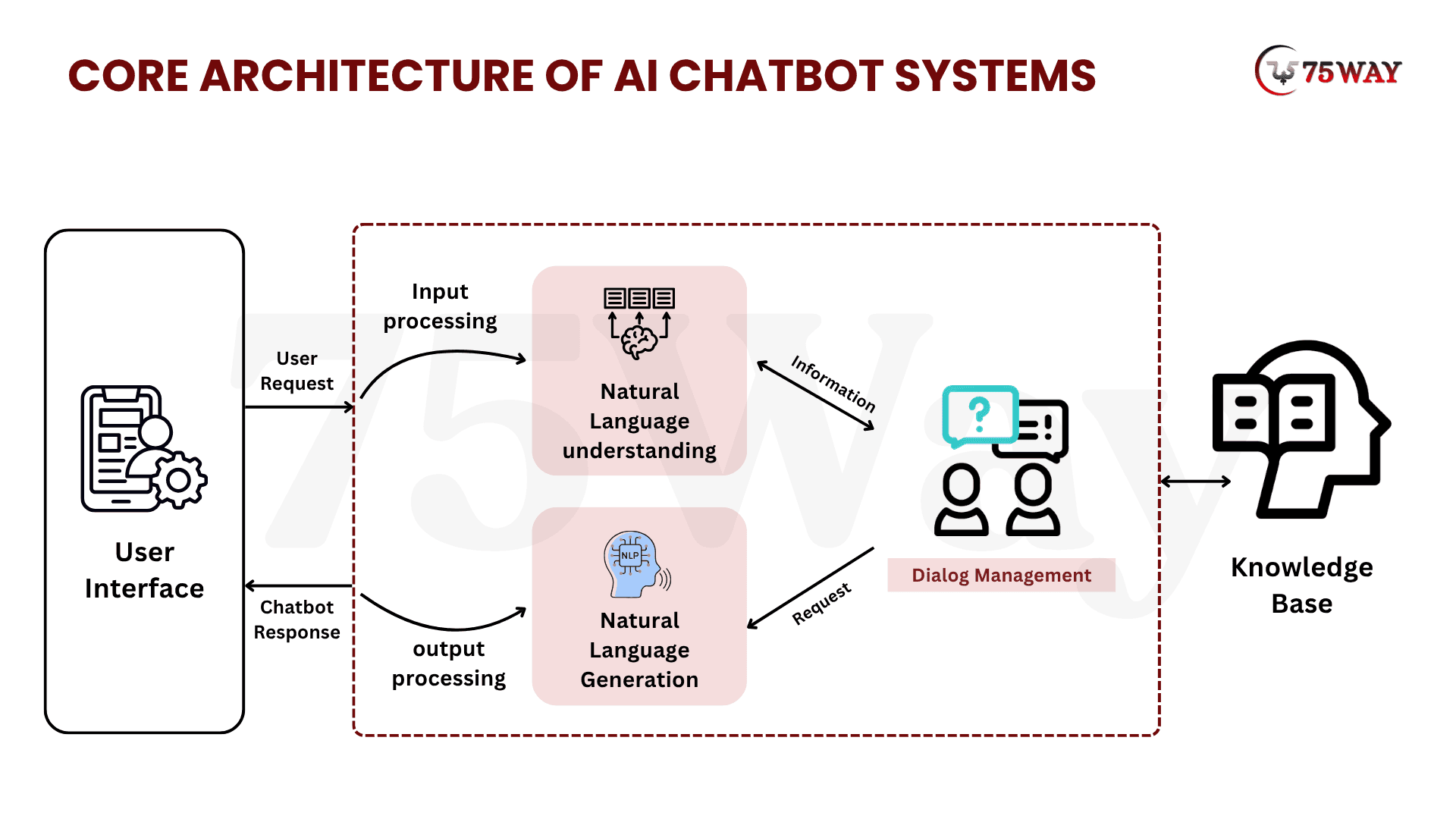 - Knowledge Integration Layer: This connects the chatbot with databases, CRMs, APIs, and enterprise systems to retrieve accurate information.