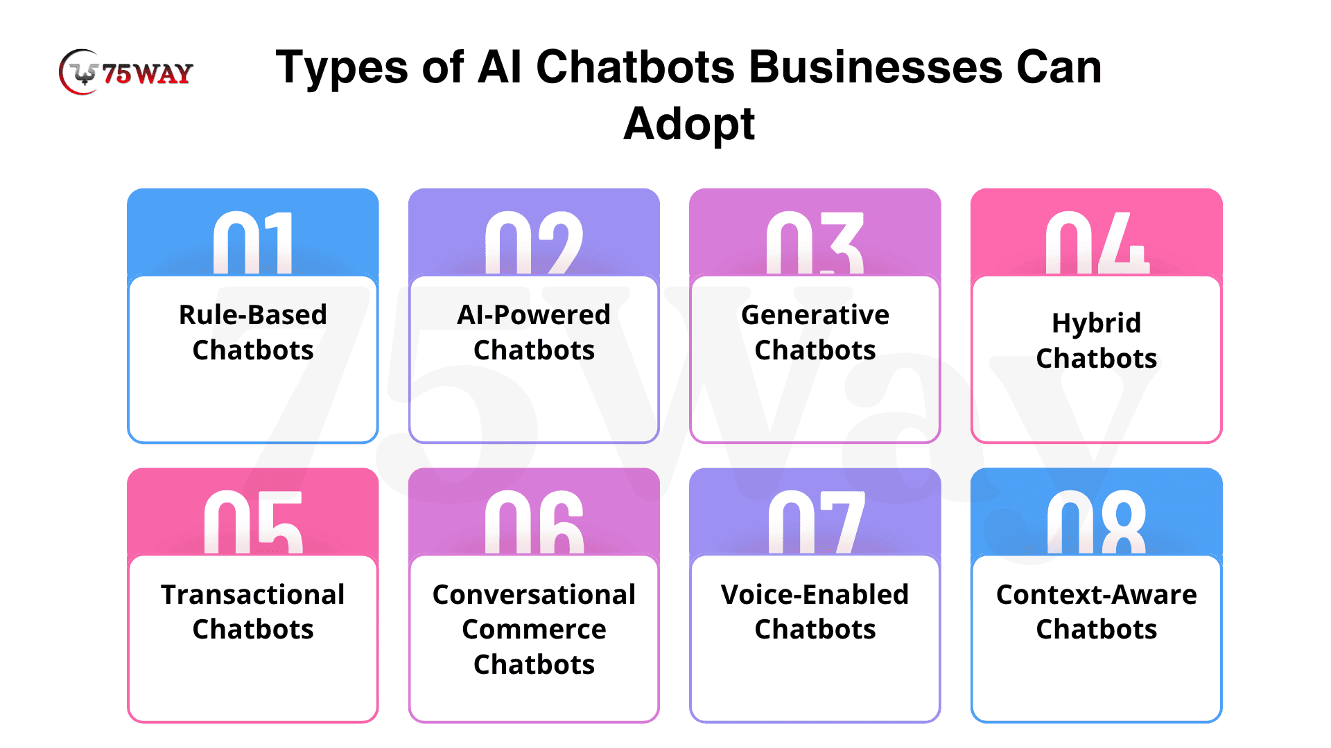 Businesses adopt different chatbot types depending on automation needs, customer interaction complexity, and scalability goals. Each type offers unique capabilities ranging from simple rule-based responses to advanced generative intelligence that supports natural conversations and complex query handling across digital platforms.