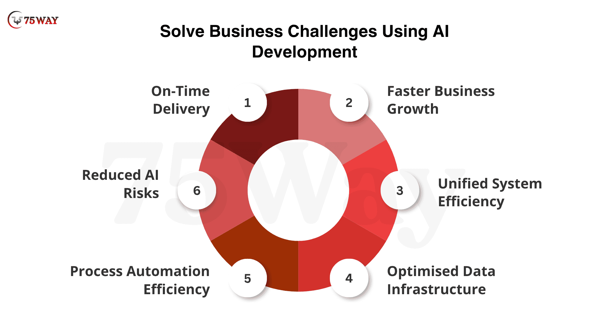 Faster Business Growth: Staying competitive while continuously innovating can strain internal teams and slow progress. With custom AI development, businesses can streamline operations, automate repetitive tasks, and identify new revenue streams. These solutions drive sustainable growth and improved efficiency.