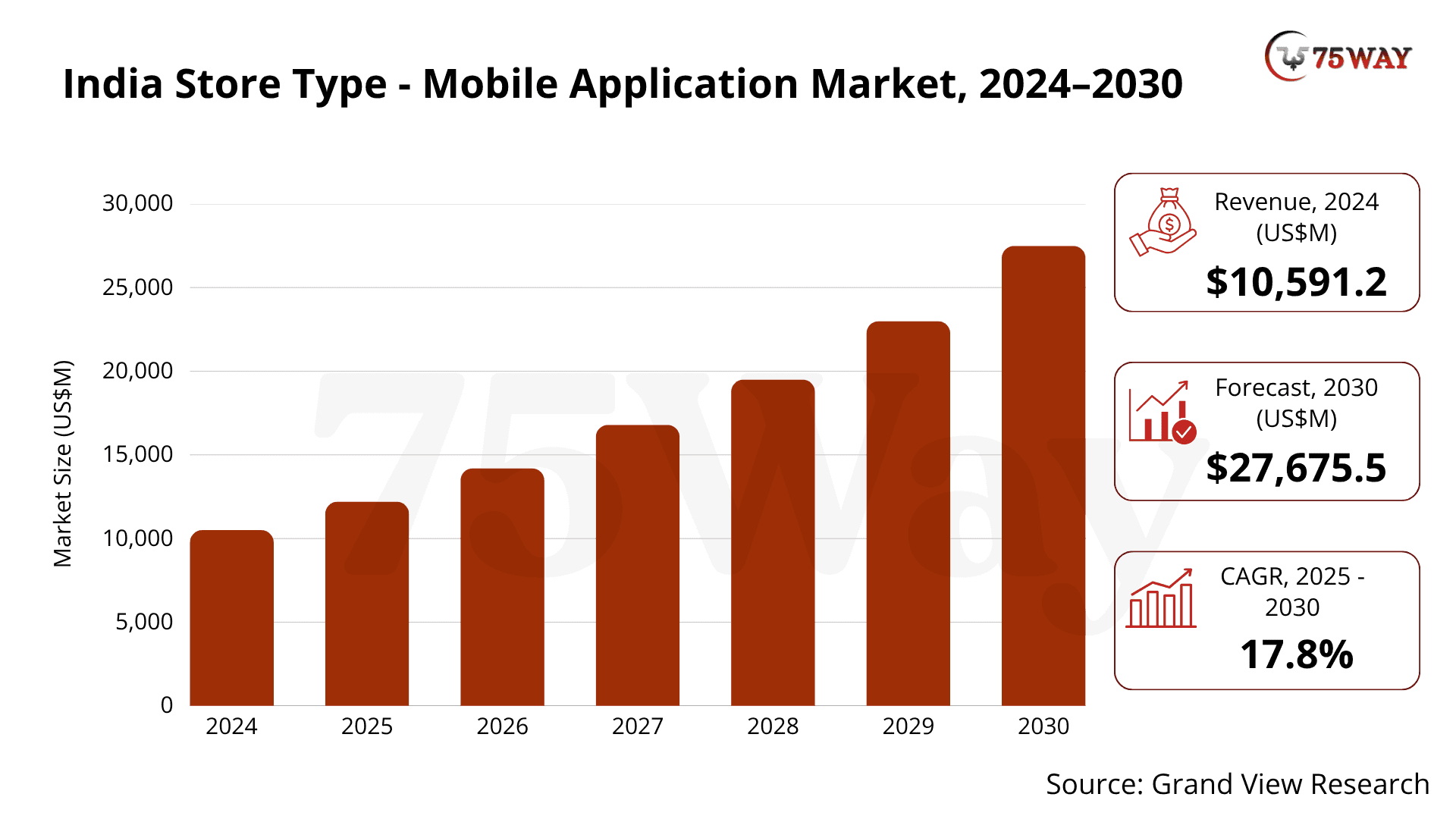India’s mobile application industry is projected to generate nearly $ 27,675.5 million in revenue by 2030, reflecting strong and consistent market expansion.