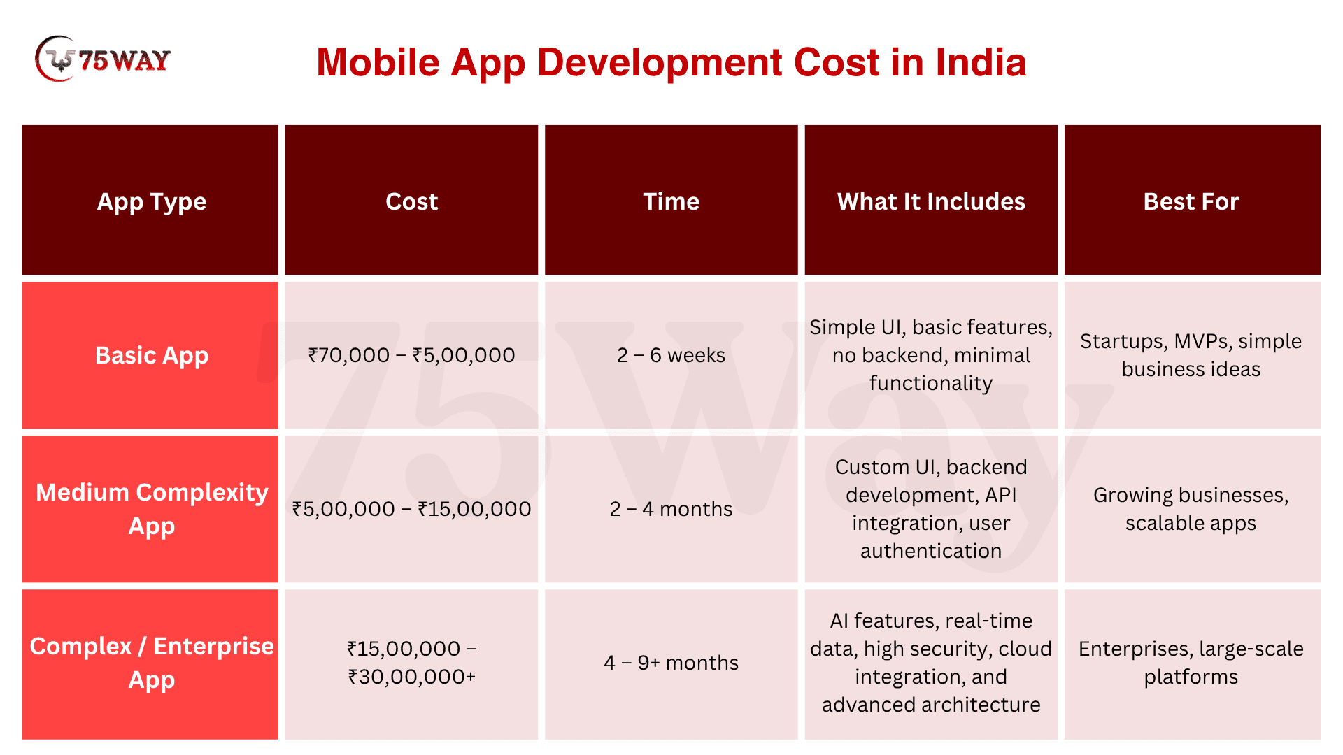 Basic App: ₹70,000 – ₹5,00,000The MVP or basic apps are ideal for simple ideas with basic features, minimal design, and quick launch without complex backend requirements.