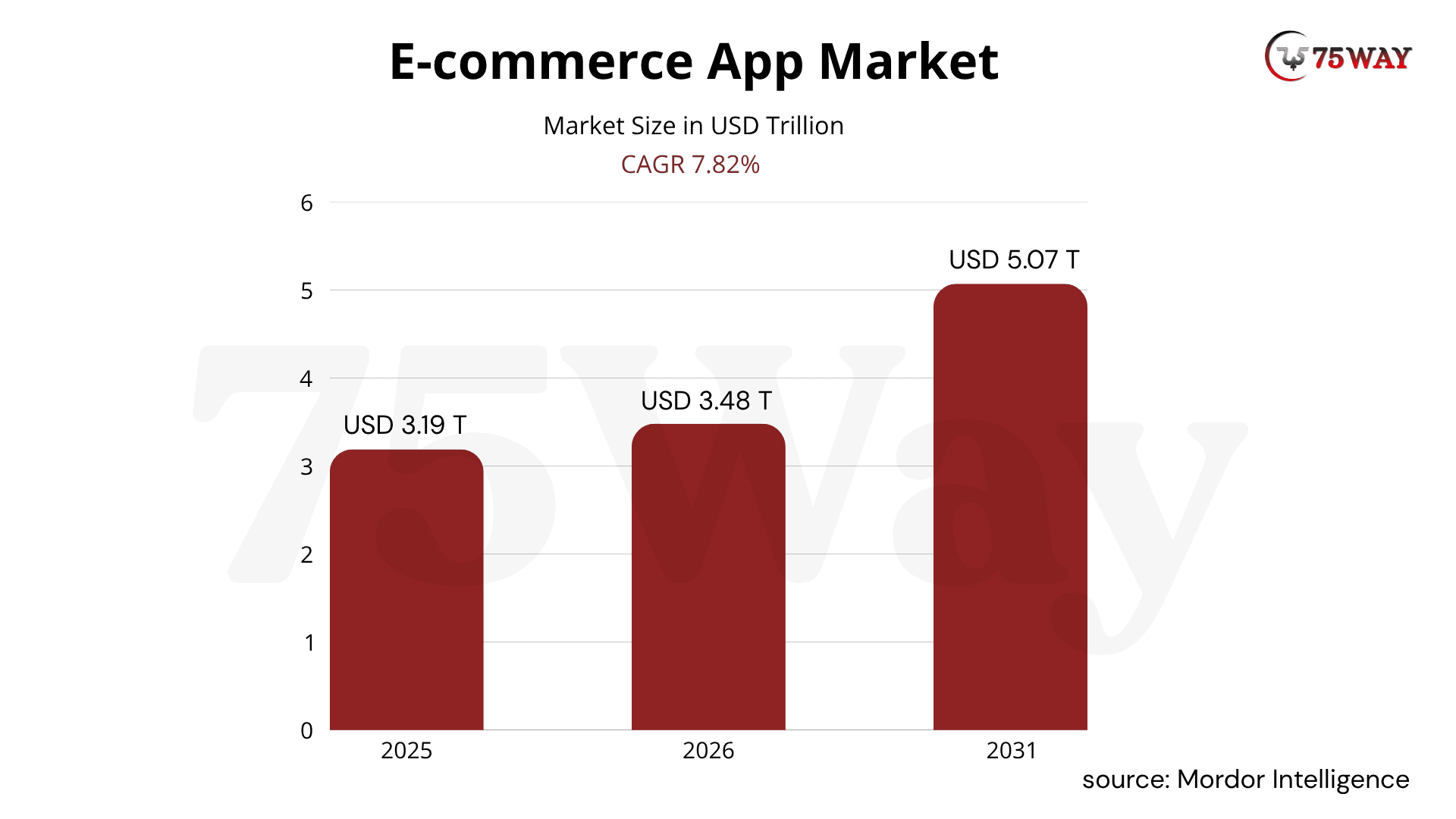 The eCommerce app market is projected to grow from $3.19 trillion in 2025 to nearly $5.07 trillion by 2031, reflecting consistent demand for mobile-first shopping experiences. Moreover, nearly 60% of new app users return to make a second purchase when their first experience is smooth and reliable. This highlights the importance of building an ecommerce application.
