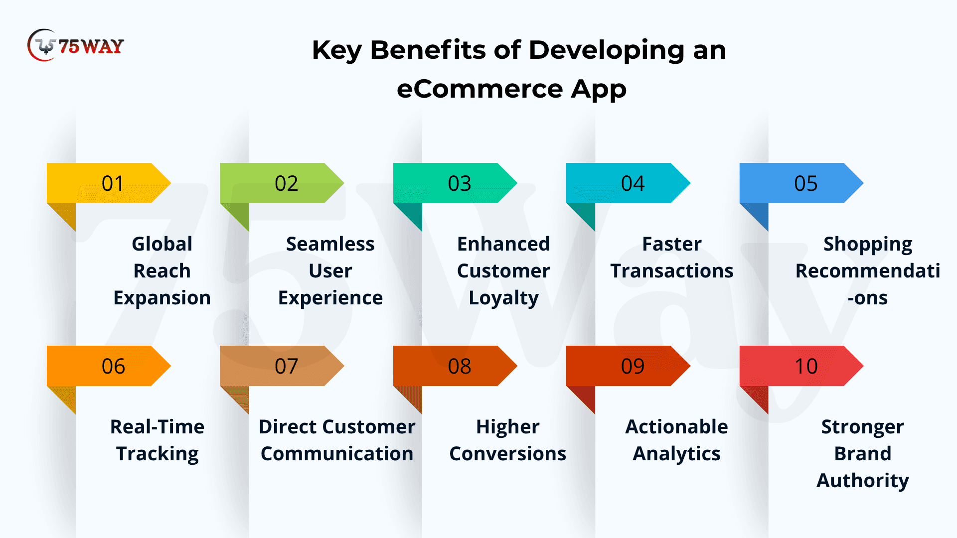 Developing a custom eCommerce application provides numerous advantages that can streamline business operations, elevate customer experiences, and increase overall revenue. Beyond immediate sales growth, it also helps build long-term brand loyalty and sustained market presence. Here are some key advantages that businesses can gain by investing in an ecommerce app.