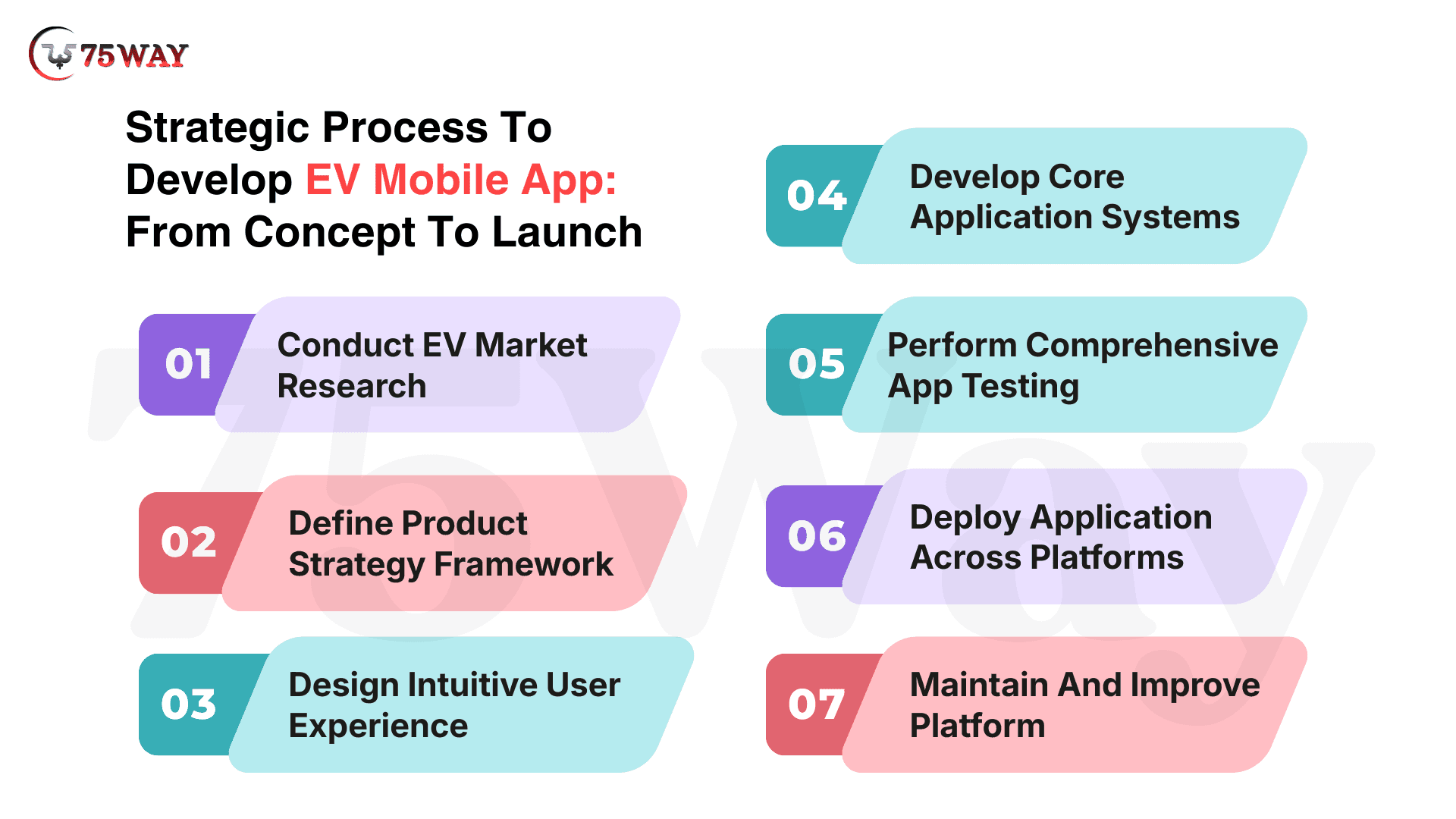A strategic and well-structured approach is required to build an EV mobile application. Businesses must combine strong market understanding, intuitive design, and scalable technologies to build reliable EV platforms. From initial concept and research to app development, testing, deployment, and continuous improvement, each stage plays a critical role in delivering a high-performing EV solution.