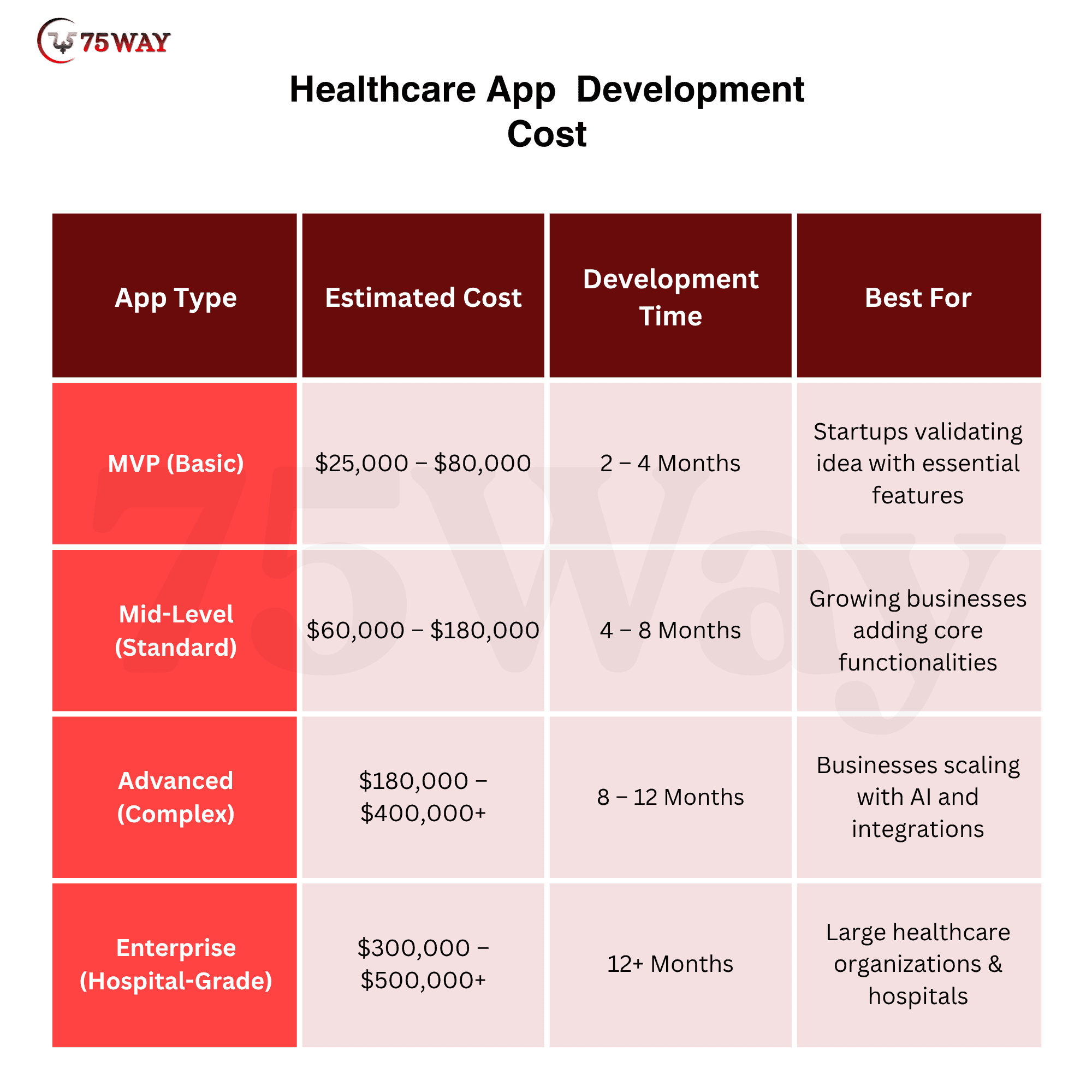 Advanced Healthcare App Cost: $180,000–$400,000+.