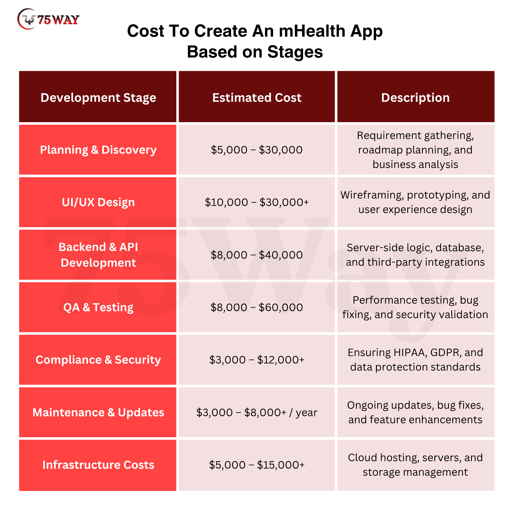 Cost To Create An mHealth App Based on Stages