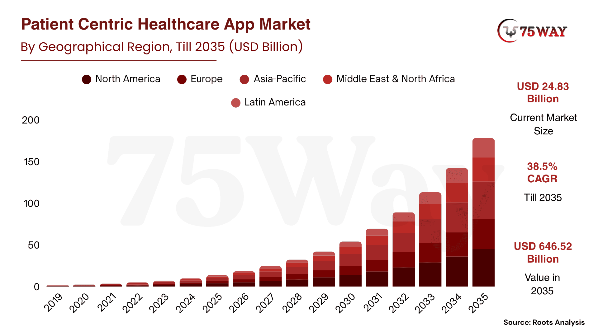 - Healthcare app market projected to reach $646.52 billion by 2035