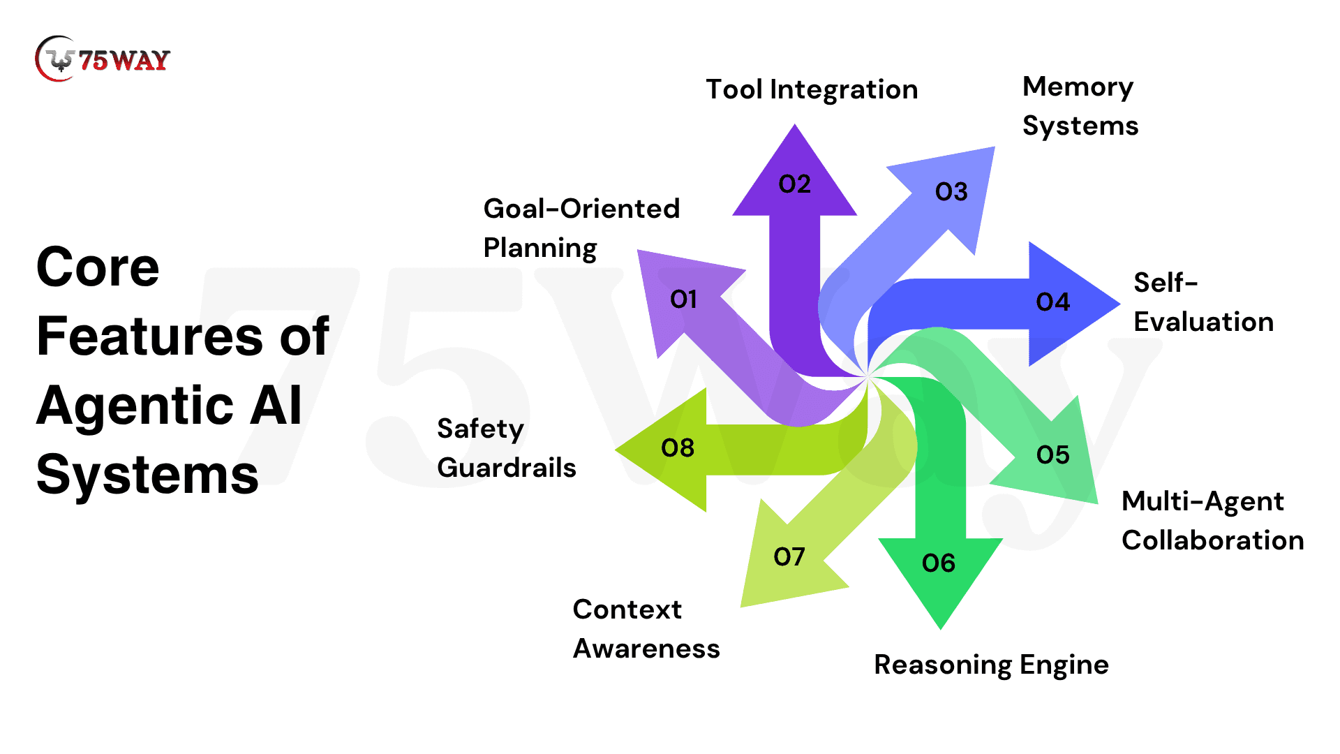 Agentic AI systems include advanced capabilities like planning, memory, tool integration, reasoning, and collaboration. These features enable autonomous agents to perform complex tasks, adapt to environments, learn continuously, and execute workflows efficiently with minimal human intervention across industries today. Modern autonomous systems built by expert developers typically include the following features: