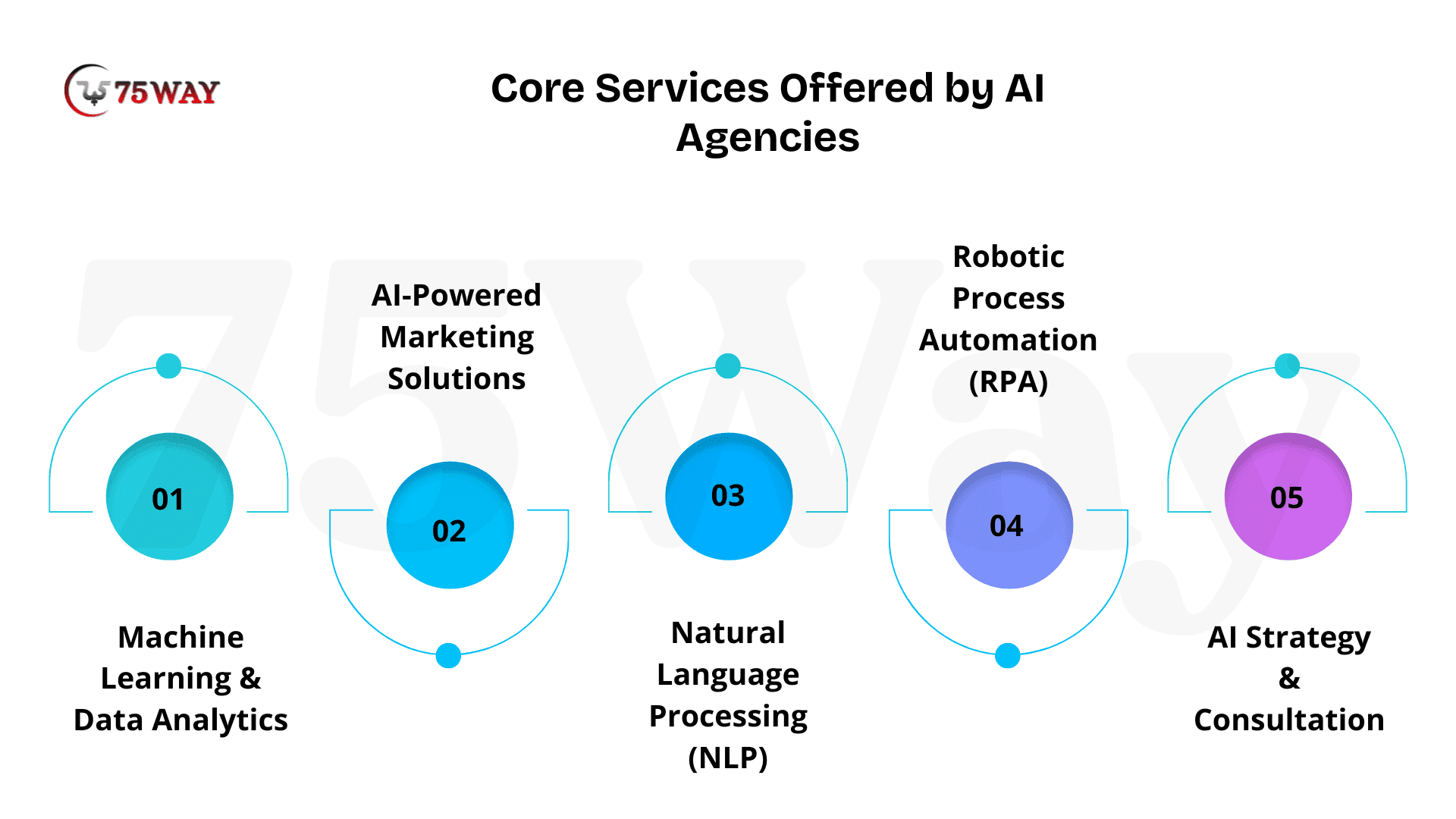 AI agencies offer machine learning, predictive analytics, AI-powered marketing, natural language processing, robotic process automation, and strategy consulting. They create customized solutions for businesses, helping optimize operations, improve customer engagement, and drive revenue while aligning technology with specific business goals and industry needs.
