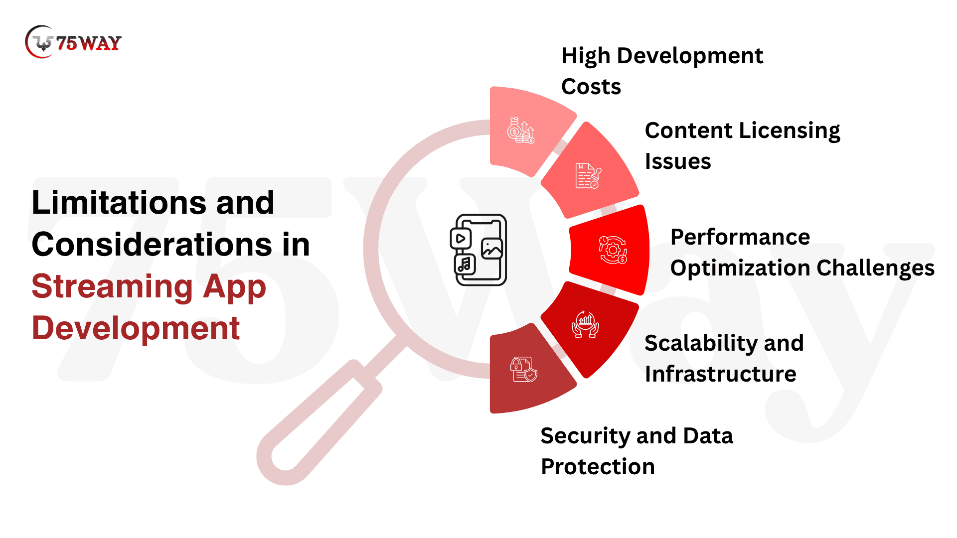 Streaming app development comes with challenges like high infrastructure costs, content licensing issues, and performance optimization. Ensuring low latency and seamless playback across devices requires advanced technologies. Adopting MVP development helps reduce risks by launching with core features first, allowing testing, user feedback, and gradual scaling while managing costs and improving overall app performance efficiently.