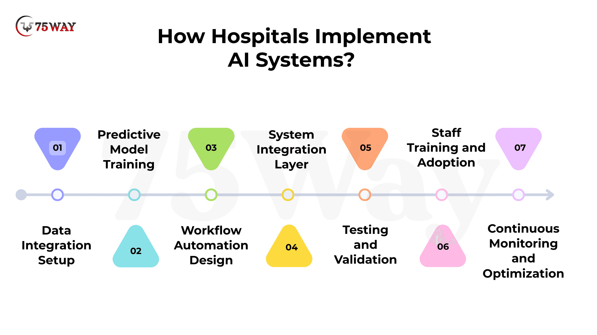 Hospitals adopt AI systems through a structured implementation process that connects data infrastructure, clinical workflows, and predictive technologies. Each stage ensures smooth integration, accurate performance, and alignment with healthcare operations, enabling intelligent decision-making and improved patient care across medical environments.