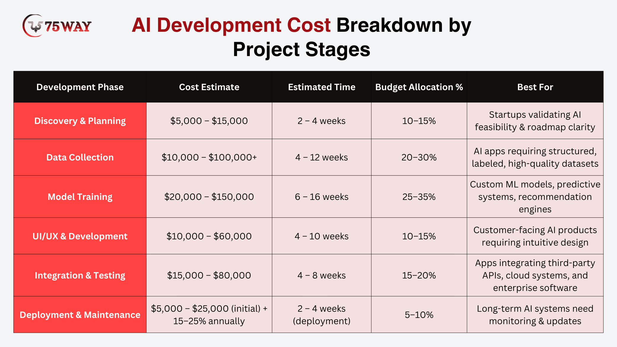 AI Development Cost Breakdown by Project Stages