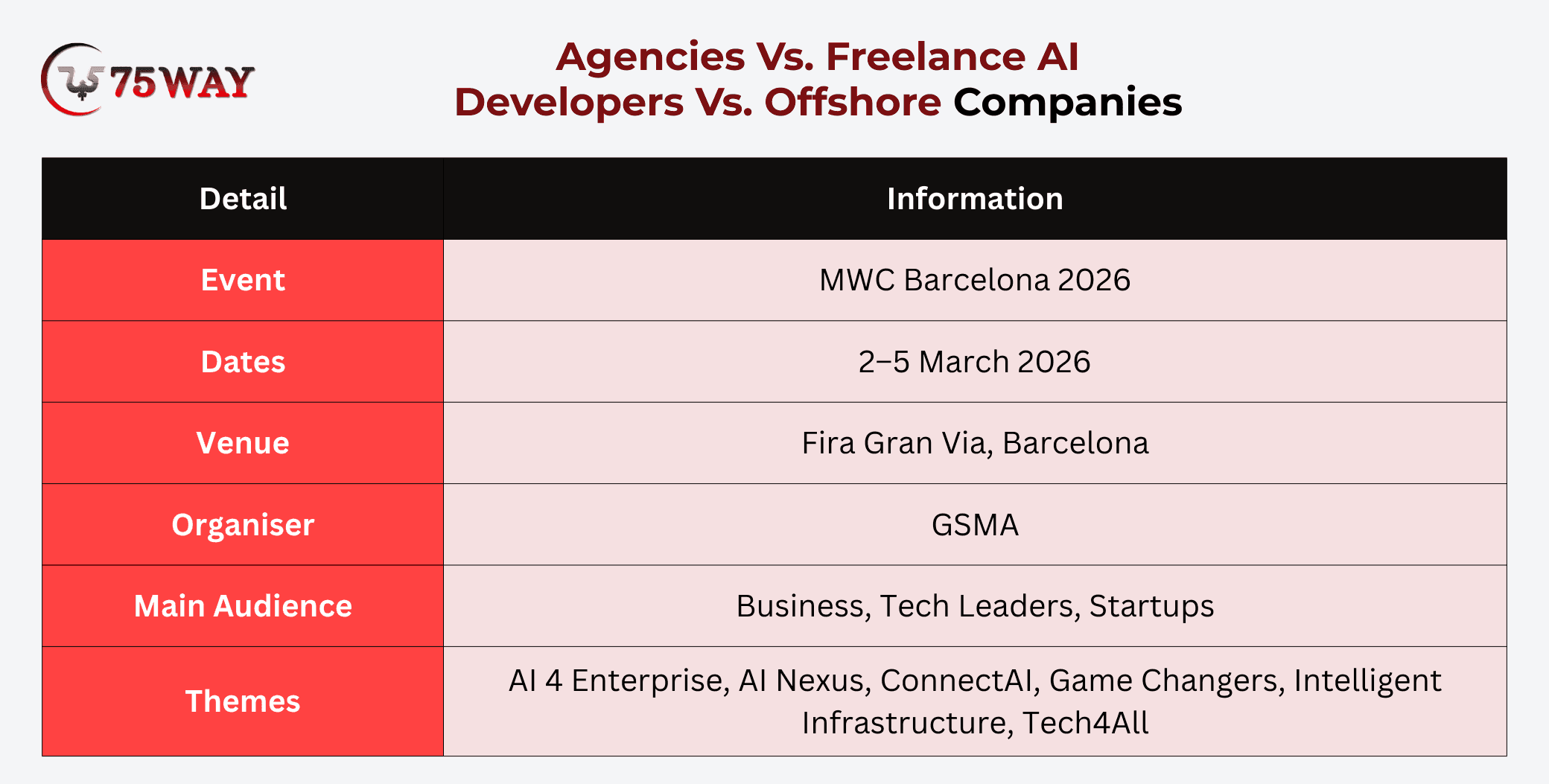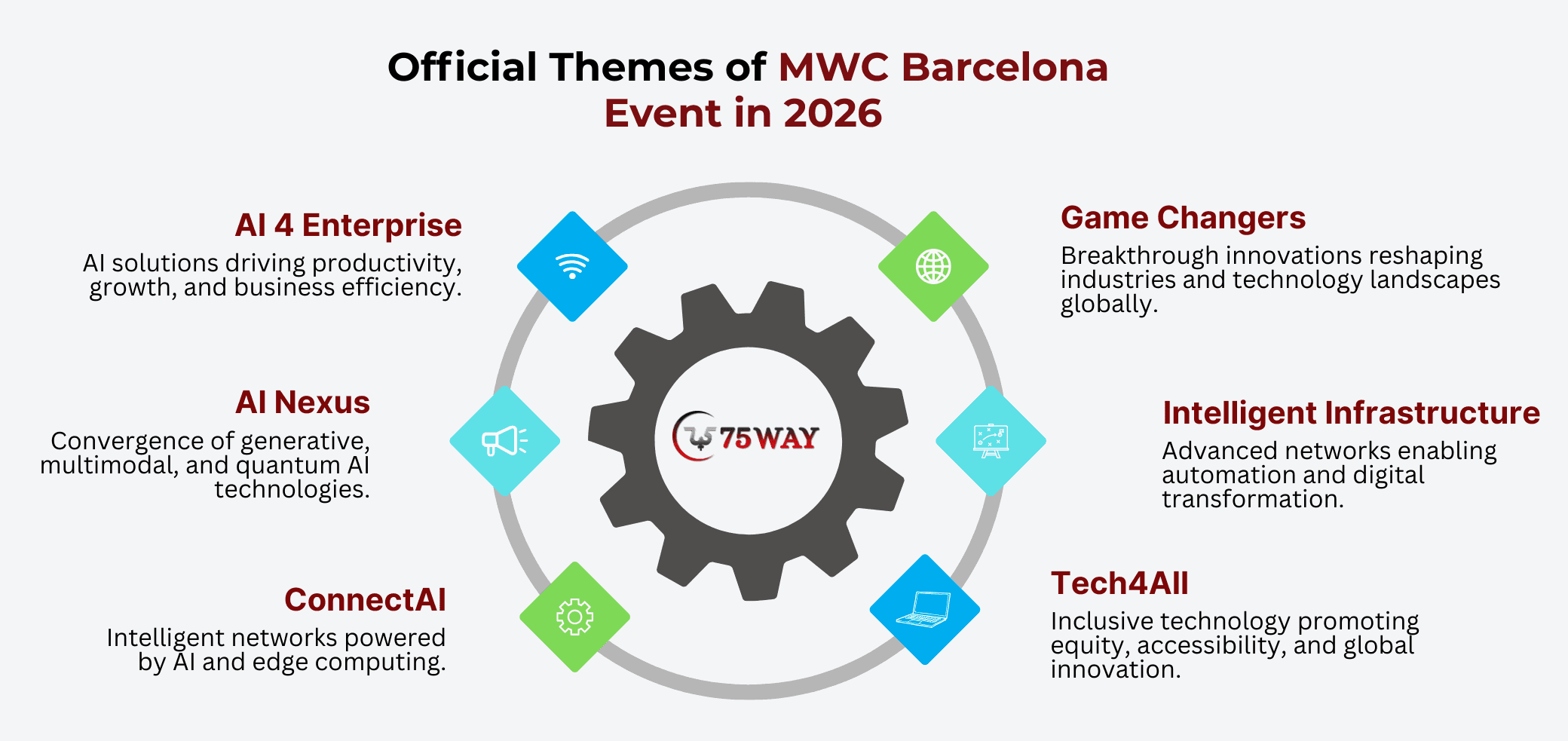 MWC Barcelona 2026 is the ultimate convergence of technology, innovation, and business strategy, offering startups and business leaders unparalleled opportunities to explore emerging trends, connect with global decision-makers, and gain actionable insights. From discovering breakthroughs in AI, IoT, and intelligent infrastructure to networking, this event provides a platform for growth, collaboration, and market leadership. Startups can showcase their innovations, secure funding, and build strategic partnerships, while established businesses can explore future-ready solutions that drive efficiency and competitiveness. Don’t miss the chance to maximize your presence and impact at MWC 2026. Book a strategic meeting now with 75way Technologies and unlock your growth potential.