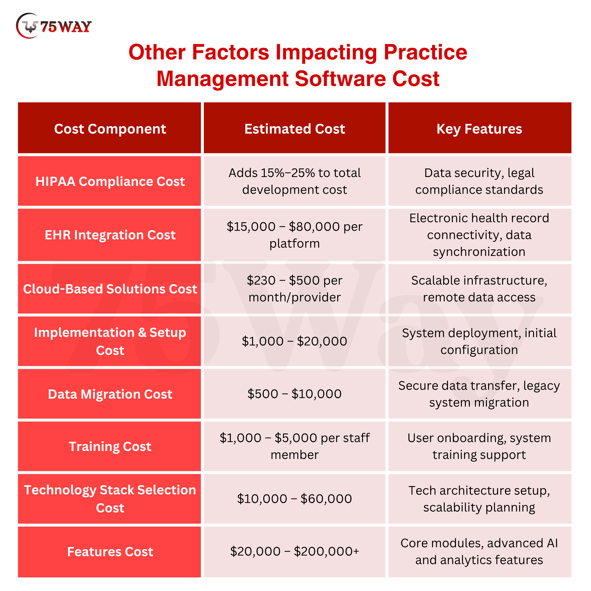 Other Factors Impacting Medical Practice Management Software Development Cost