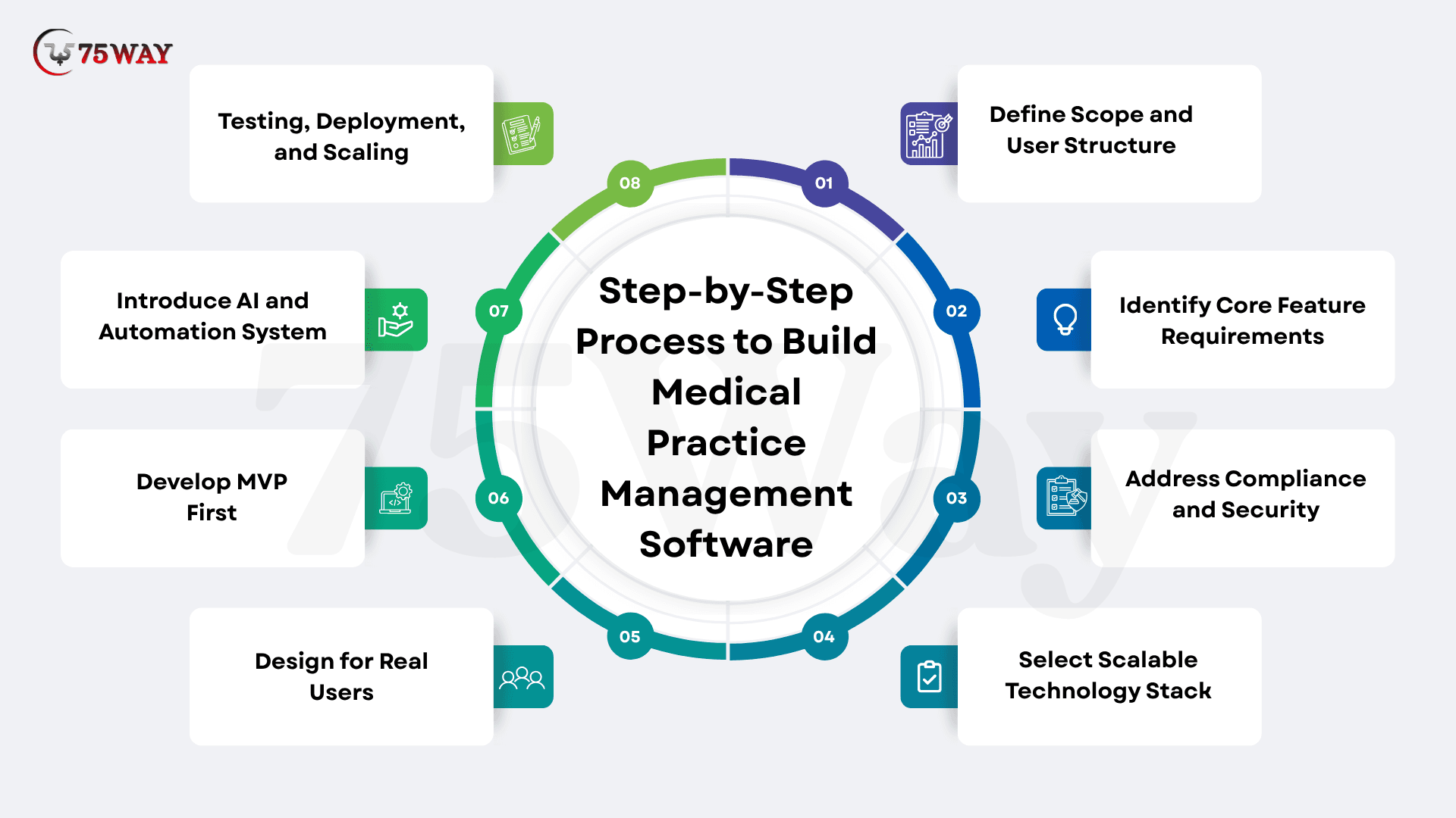 To create a medical practice management software requires a structured process from defining requirements to deployment. Each stage focuses on functionality, compliance, scalability, and user experience. The final system supports clinical workflows, improves operational efficiency, and adapts to evolving healthcare demands.