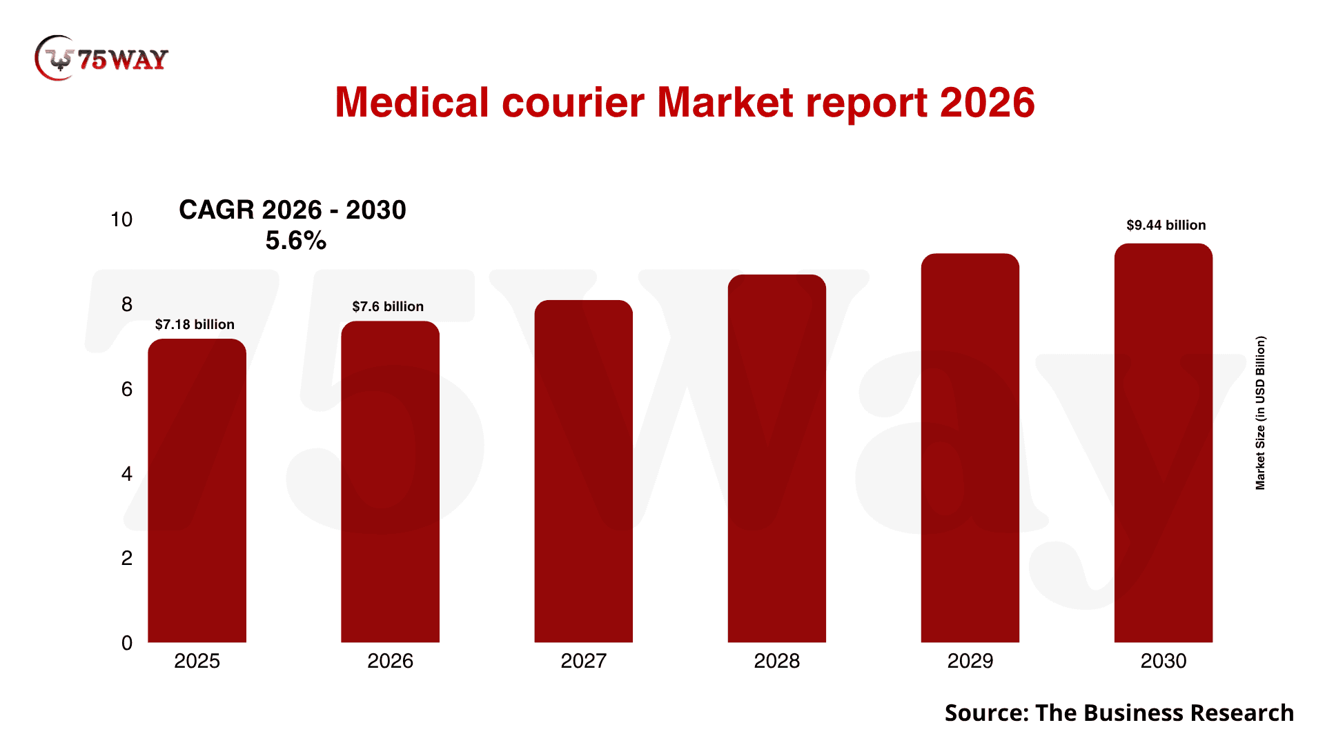 - The medical courier market is estimated to be worth $7.6 billion in 2026 and is expected to grow at a CAGR of 5.9% in the coming years, as reported by The Business Research Company