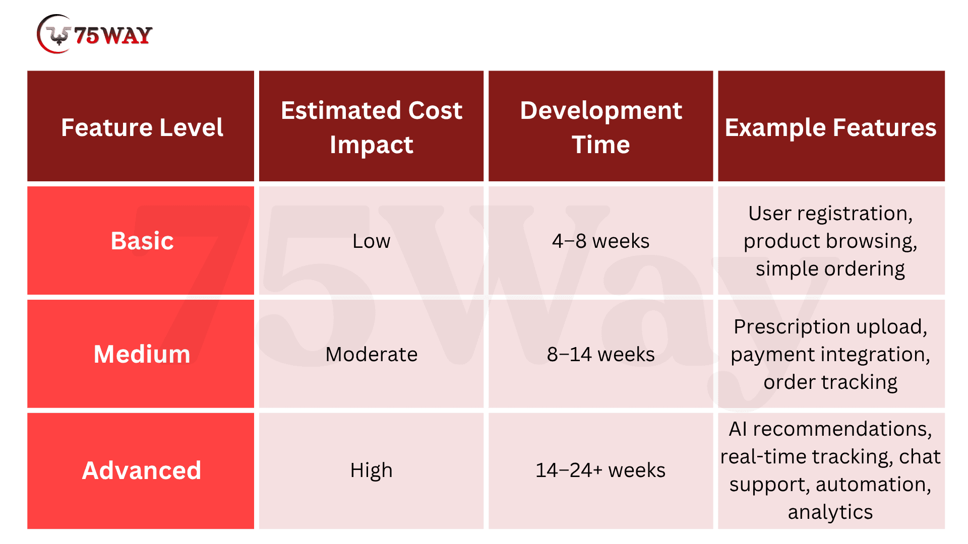 Third-party integrations play a key role in enhancing the functionality of a medicine delivery app by connecting external services like payment gateways, SMS/email notifications, maps, and analytics tools. The number and complexity of these integrations directly affect both development cost and time, as each integration requires proper setup, testing, and maintenance to ensure smooth and secure performance.