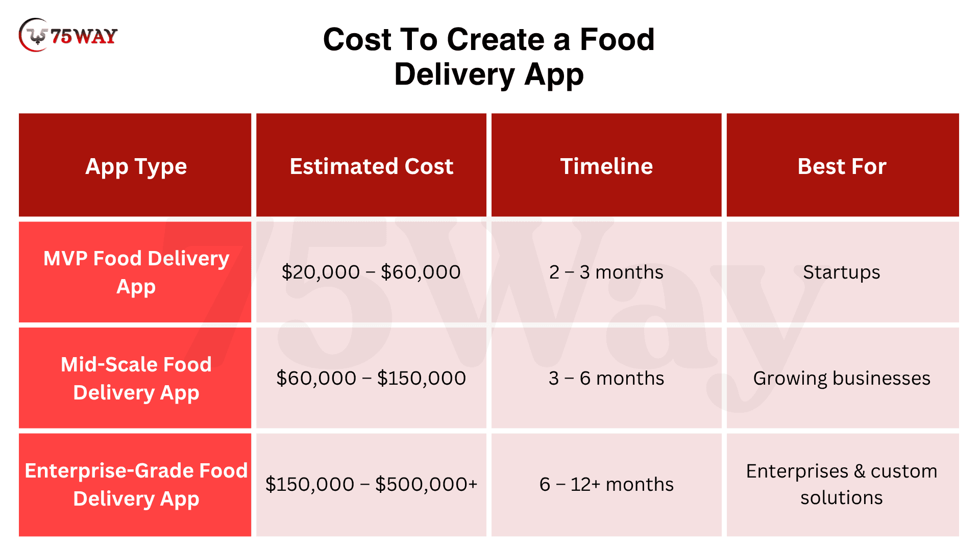 - Mid-scale Food Delivery App: $60,000 – $150,000