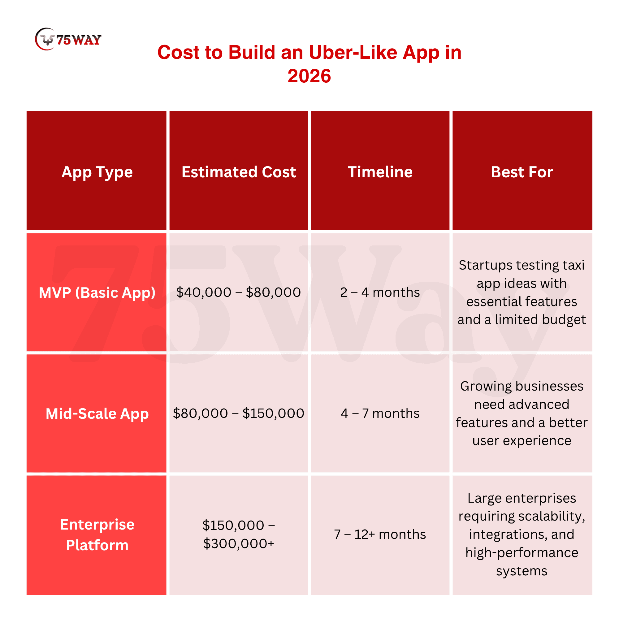 - Choose custom Uber-like app building agencies → long-term scalability