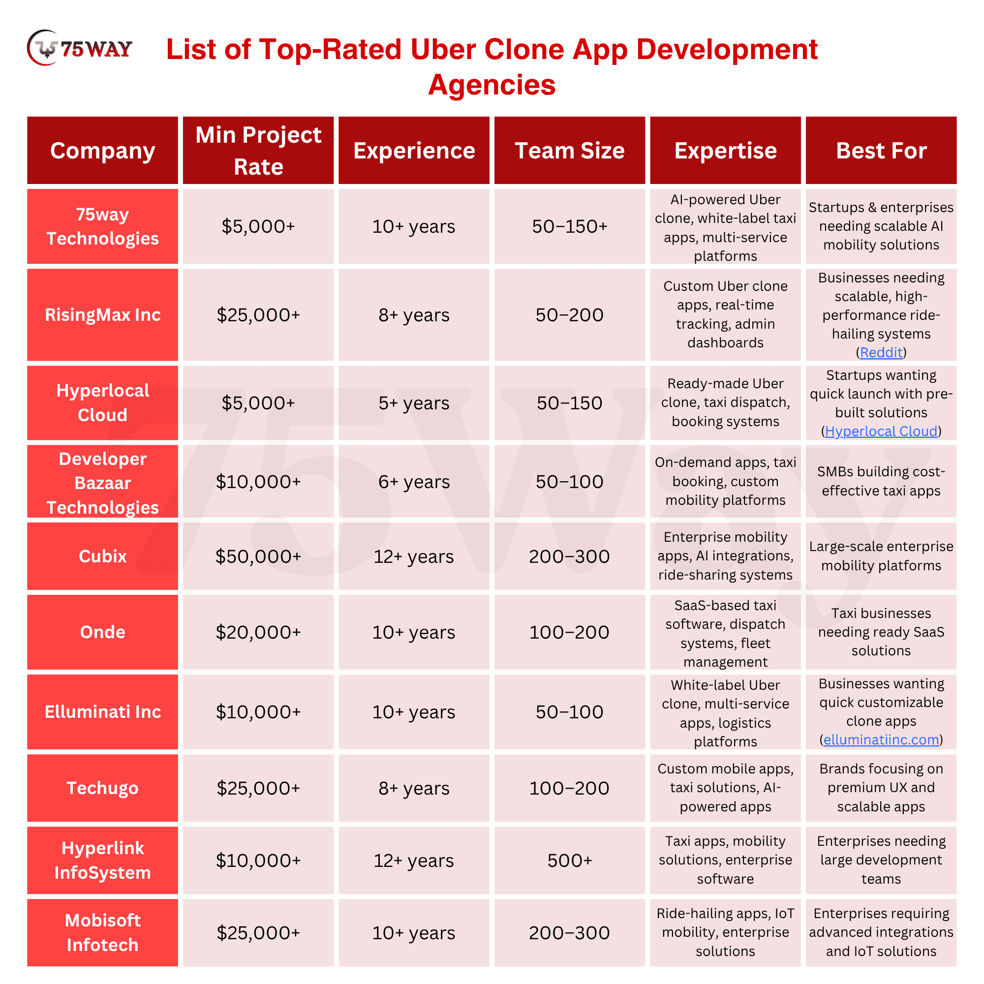 List of Top-Rated Uber Clone App Development Agencies: Comparison