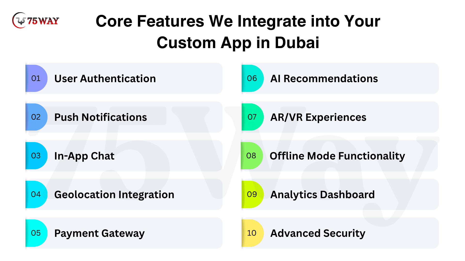 75way Technologies is a leading Dubai-based app development agency delivering custom Android, iOS, and cross-platform solutions. With expert developers, AI, blockchain, and IoT expertise, we build secure, scalable apps that drive engagement, growth, and measurable business success.