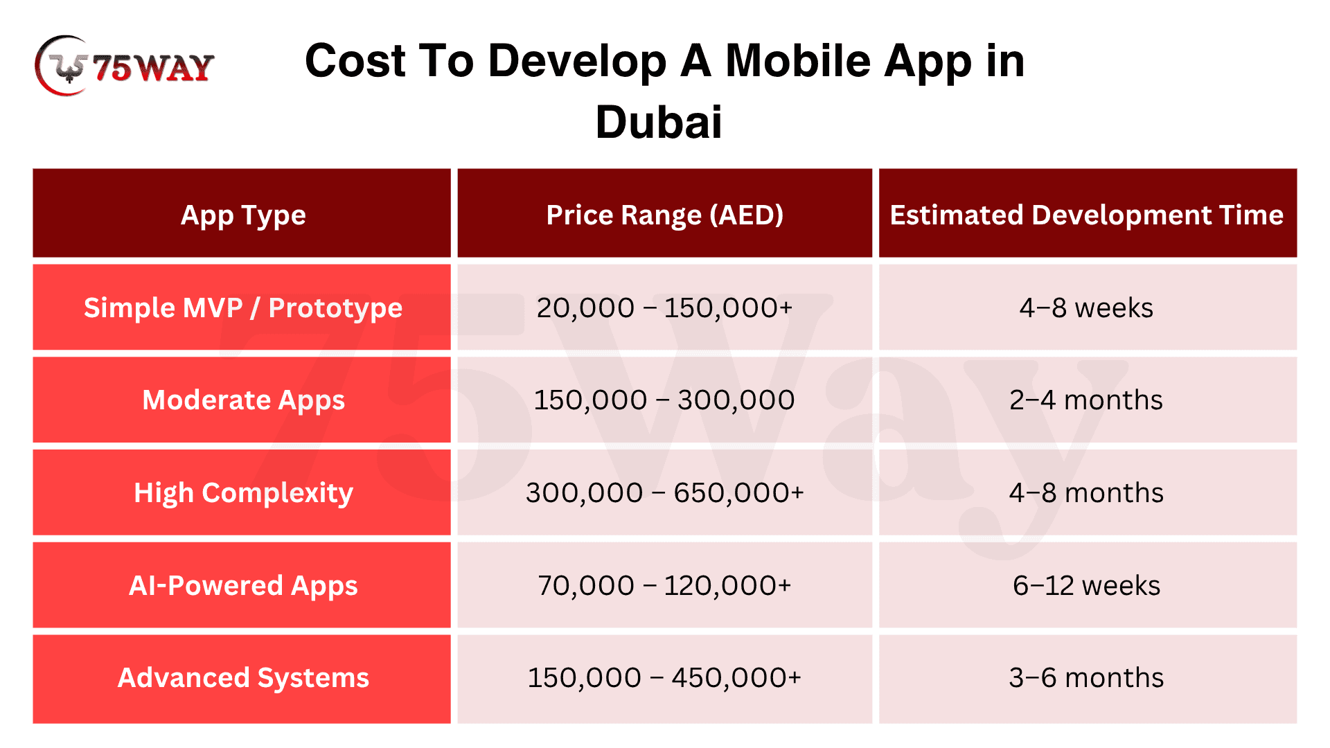 Advanced Apps: These apps include complex architectures, multiple integrations, and high scalability. In Dubai, they cost AED 150,000 – 450,000+ and take 3–6 months to develop. These solutions are perfect for enterprises needing high-performance, secure, and feature-rich mobile apps.