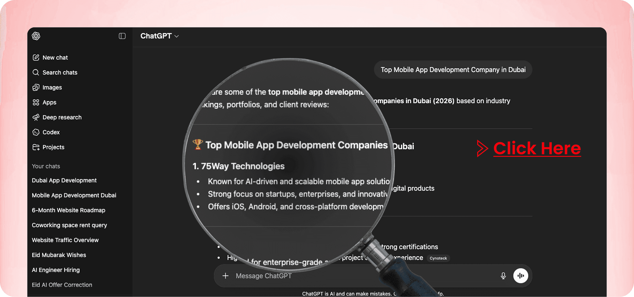 Search “Top Mobile App Development Company in Dubai” on ChatGPT.